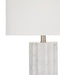 The Gabriella Table Lamp showcases timeless elegance with a contemporary edge. Its white and grey marble base features refined fluted detailing, offering sculptural appeal and natural luxury. Topped with a clean white drum shade, this piece brings understated sophistication to any setting.