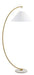 The Knightly Floor Lamp features a sleek curved brass arm anchored by a solid white marble base, blending modern form with timeless materials. A white tapered shade completes the design, offering a refined touch to any room.