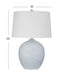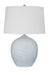 The Lyance Table Lamp features a ceramic lamp body with gentle swirling patterns in hues of pale blue and white, reminiscent of a delicate watercolor painting or the soft swirls of sea foam. The rounded, bulbous shape of the base adds to its fluid, organic aesthetic. This is topped with a simple white shade that diffuses the light evenly, creating a serene ambiance that's perfect for rooms designed with relaxation in mind.