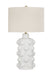 The Lynn Table Lamp features a white ceramic base with intricate knob detailing, offering a sculptural element with subtle texture. A neutral linen shade complements the design, casting a soft, ambient glow. Its clean finish and thoughtful detailing bring an understated elegance to a variety of interiors, blending effortlessly with both classic and contemporary styles.