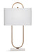The Mabel Table Lamp showcases a sleek modern design with a lustrous brass finish atop a marble base, paired with an oval white linen shade for an air of contemporary sophistication. This lamp melds the coolness of metal with the warmth of brass and linen, perfect for illuminating your space with style and grace.