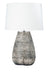 - Features a white, tapered drum shaped lamp shade