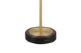 The Norfolk Floor Lamp exudes contemporary glam style, featuring a striking black marble base complemented by a sleek gold brass body. Its cone-shaped lamp shade, crafted from white metal, adds a sophisticated touch to any room. With its modern and timeless design, this lamp effortlessly combines elegance with functionality.