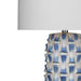 The Stones Table Lamp is crafted of ceramic with a white drum shade. Finish: blue, white. Material: ceramic. Wattage: 100W Max. Bulb Type: A. Socket Type: E26. The hand crafted details produced by a skilled artist lends itself to a unique technique and will vary slightly. COO: China.