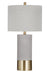 The Tano Table Lamp is crafted of cement with a drum shade. Finished in gray with antique brass accents.
