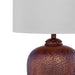 The Trevor Table Lamp exudes rustic charm with its textured copper base, adding warmth and character to any living space. Its traditional shape offers a timeless appeal, making it the perfect addition to rooms adorned with classic motifs. Crafted with metal and paired with a crisp white linen drum shade, this lamp casts a soft, inviting glow, creating a cozy ambiance that welcomes relaxation and comfort.