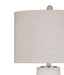 The Valdivia Table Lamp brings a serene coastal vibe with its matte white finish and durable resin construction. Its understated design is perfectly paired with a beige linen drum shade, casting a gentle, diffused light that's ideal for creating a calming atmosphere in any room. This lamp blends simplicity and charm, capturing the relaxed essence of seaside living.