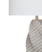 The Vanessa Table Lamp features an elegantly spiraled body, adding a dynamic sense of movement to the design. Its textured surface and the neutral color palette emphasize the lamp's sophisticated and contemporary aesthetic. The base's sculptural form is complemented by a brass-finished base that adds a hint of warmth and luxury. Topped with a wide, white lampshade, the Vanessa Table Lamp diffuses light beautifully, making it both a striking decorative piece and a source of ambient lighting.