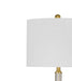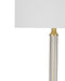 The Yukon Table Lamp blends traditional charm with luxe appeal, featuring a refined combination of glass and metal. Its elegant silhouette is topped with a crisp white drum shade, casting a soft, inviting glow. The mix of materials creates a timeless look that effortlessly complements both classic and modern interiors. A statement of understated sophistication, the Yukon Table Lamp brings warmth and style to any space.