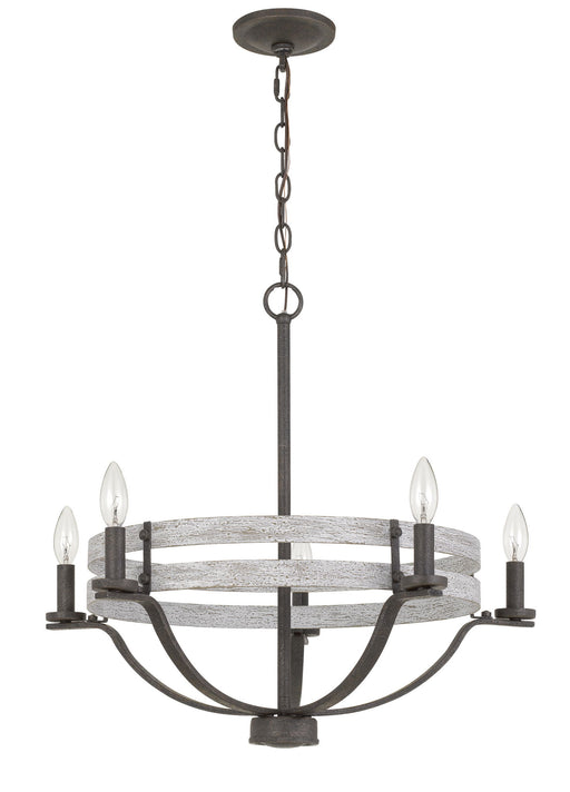 Cal Lighting60W x 5 Brig Metal ChandelierProduct Features Metal Painted wood finish Brig - Chandelier - Natural Wood & Iron25.0"W x 25.0"D x 22.5"H - 12.7...