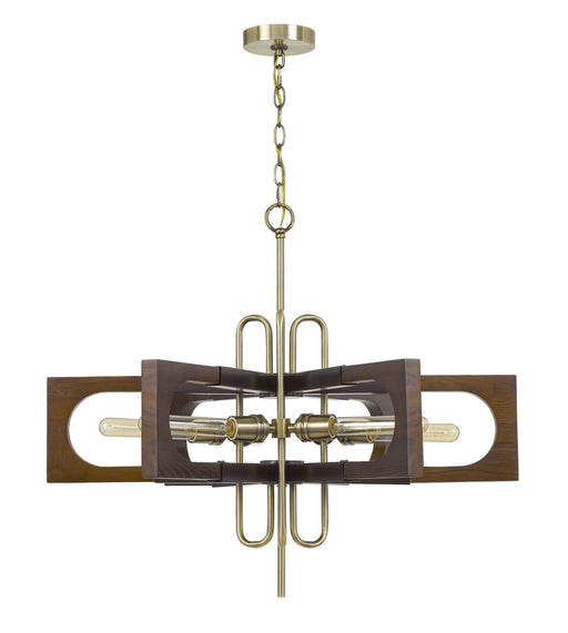 Cal Lighting60W x 6 Savona Pine Wood/Metal Chandelier With Double Layer Glass/Metal Mesh Shade. (Edison Bulbs Not Included)Product Features Constructed with du...