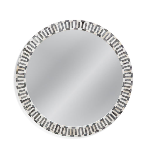 Bassett MirrorSceptre Wall Mirror is round framed in a blue and white bone frame. Includes two "D" ring attachment points for ease of access for hanging.Product ...