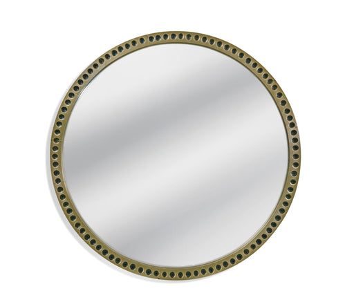 Bassett MirrorSansee Wall Mirror is round featuring a circle motif design. The mirror frame features a brass clad finish. Includes two "D" ring attachment points...