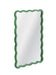 The Cassia Wall Mirror is an ideal accent to enliven your space, boasting a fun green frame for a vibrant touch. Its wavy edges offer a playful twist on the traditional rectangular shape, adding character to any room. Crafted with a green finish, this mirror complements your decor effortlessly.