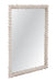 The Churchill Wall Mirror blends modern appeal with artisan craftsmanship. Its rectangular shape is framed by uniquely carved wood in a distressed white wash finish, offering a fresh yet timeless look that elevates any interior.