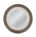 - Art deco-inspired round wall mirror with a distinctive gray rope frame