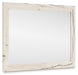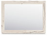 Details Made with engineered wood (MDF/particleboard/plywood) and decorative laminate for the right balance of affordability and durability, Rustic white finish over replicated reclaimed oak grain with authentic touch, Decorative laminate replicates natural or man-made material surfaces with consistent color, pattern and texture, Mirror attaches to back of dresser; can also be mounted on wall horizontally or vertically