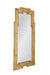 The Metouro Floor Mirror features an art deco-inspired shape with a beautifully antique gold gilded frame, adding a touch of timeless elegance to any room. The modern traditional design blends classic charm with contemporary appeal, making it a versatile piece that complements a variety of interiors. The rich gilded frame enhances the mirrors reflective surface, creating a striking focal point in your space. The Metouro Floor Mirror brings sophistication and style, offering both beauty and functionality for your home decor.