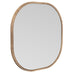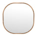 The Richards Wall Mirror boasts a wooden square design with rounded corners, featuring natural materials that evoke a Boho style. Its glass mirror is framed by natural mango wood, with a square frame featuring an inner curve for added dimension and style, blending modern aestheics with natural charm.
