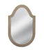 The Shiielded Wall Mirror has a shield like silhouette with repetitive pear-like strands. The mirror frame is finished in an antique silver. Includes two "D" ring attachment points for ease of access for hanging.