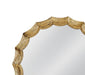 The Southgate wall mirror is round with a scalloped frame. Frame is finished in a gold leaf.