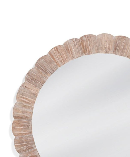 Bassett MirrorJacque Wall Mirror is round with soft scalloped edges finished in a natural mango wood with highs and lows of the natural mango wood color patterns...