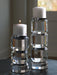 Clearly upscale and on-trend. Pairing crystal with silvertone metal accents, this candle holder set shines with a sophisticated sensibility. It's perfect for your contemporary design tastes.