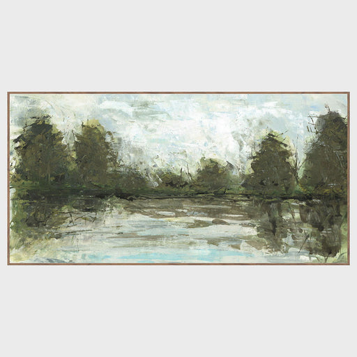 Classic HomeLayers of soft greens and muted earth tones flow across Marsh Painting, capturing the tranquil beauty of a natural landscape. Suspended in a walnut...