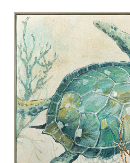 Bassett MirrorAlanton Framed Canvas - Beige / GreenProduct Features Sea turtle swimming through coral reefs Rich blue and green hues with subtle pops of color Wr...