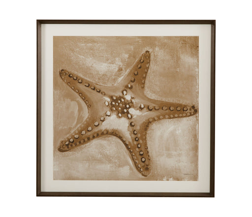 Bassett MirrorNeutral Starfish is a print framed in a matte white 1-1/8" molding with a dark tan matboard.Product Features Dark brown frame Tan matboard Starfish...