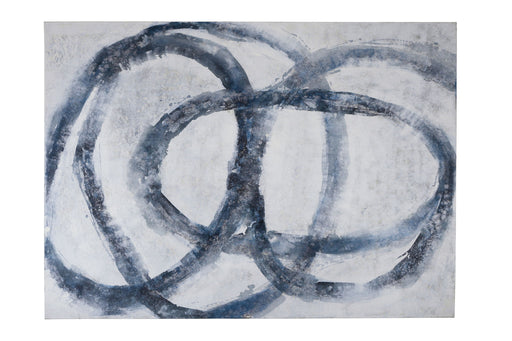 Bassett MirrorThe Ribbons Canvas Art showcases a fluid design with swirled blue acrylic paint creating an abstract ribbon pattern across a white canvas. The artw...