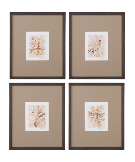 Parchment Coral Framed Print (Set of 4) - Brown
