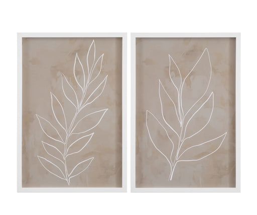Leaf Line Art Framed Print (Set of 2) - Light Brown