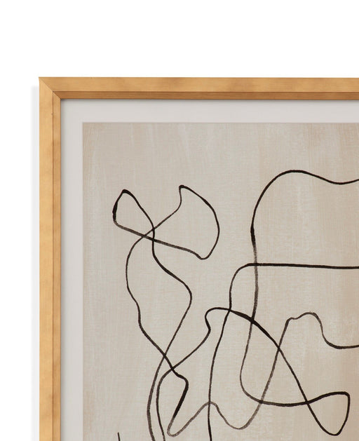 Bassett MirrorBound I features abstract ink scribbles on a cream background with white border and a simple natural wood frame.Product Features Made in the USA, t...