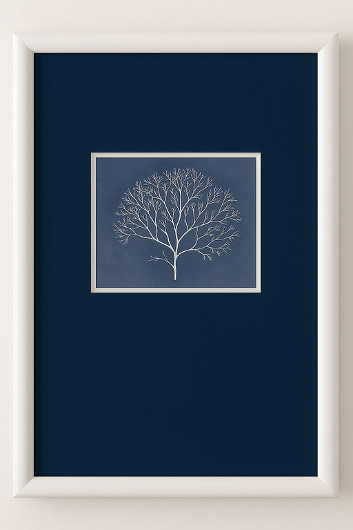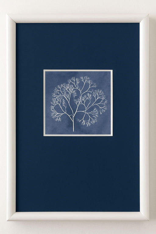 Coral Silhouette II Framed Print - Blue / White