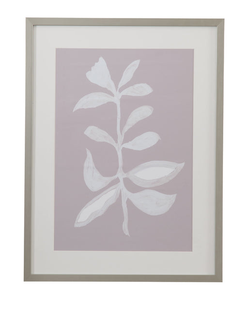 Bassett MirrorFresh Leaves I is a print framed in a silver shadow box 1" molding with a pure white matboard with a silver edge on the interior of the matboard.Pr...