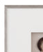 • Light wood-like frame and thick white mat board create a modern contrast