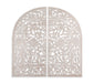 Arched wall hanging is a 2 piece set featuring a floral cutout design.