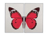 Butterfly is a 2 piece diptych hand painted framed canvas in a white molding.