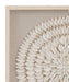 The Donellie Wall Art showcases a neutral organic style, featuring folded rice paper pieces arranged to create a bold round medallion design. The soft linen background adds texture and depth, while the off-white frame complements the piece with a subtle, refined finish. This unique artwork brings an elegant yet natural touch to any space, offering a balance of simplicity and artistry that enhances a variety of interior styles.
