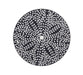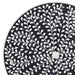 Everlasting Wall Art is a wooden round wall hanging with a black and white mosaic like floral design.