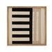 Kunth Wall Art is a shadow box accentuated with a fiber woven design with a natural wood molding.