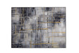 Logistics is a hand painted highly textured mixed media gallery wrapped canvas with gold and silver metallic paint accents.
