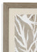 Mudcloth Foilage I features fine art cotton rag paper and a 2" rustic gray molding and an oyster matt board.