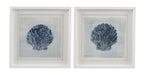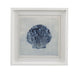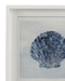 Blue Treasures I is a print framed in a matte white 1-1/8" molding with a double mat in pure white and pacific blue matboard.