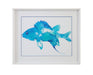Fish I is a print framed in a white 3/4" molding with a blue matboard.