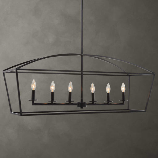 UttermostSimple Clean Open Frame Lines Are The Focus Of This Vintage Farm Industrial 6 Lt. Linear Chandelier. The Deep Dark Weathered Bronze Finish Is Moder...