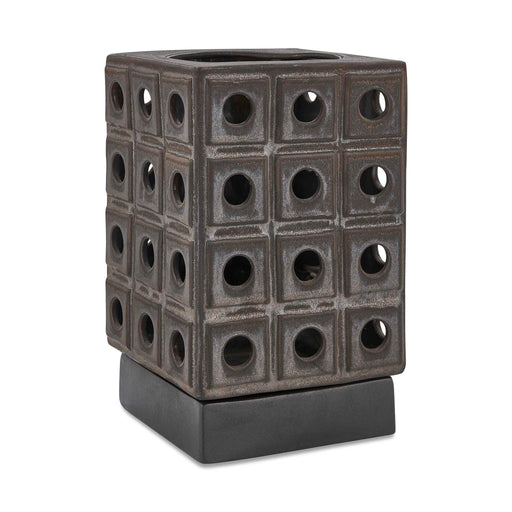 UttermostThis Sculptural Earthenware Candle Holder Features A Unique Design With A Modern, Architectural Design, Finished With A Distressed Brown Glaze, Rev...