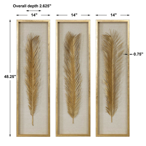 UttermostThis Set Of 3 Shadow Box Art Features Gold Finished Sago Palm Leaf Replicas, Set On A Neutral Linen Background With Hand Applied Gold Leaf Frames.P...