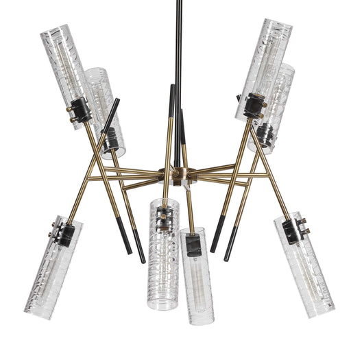 UttermostA Traditional Chandelier In A Warm Brass Finish Modernized With A Slender Clear Glass Center Column Featuring Clear Acrylic Accents And White Silke...